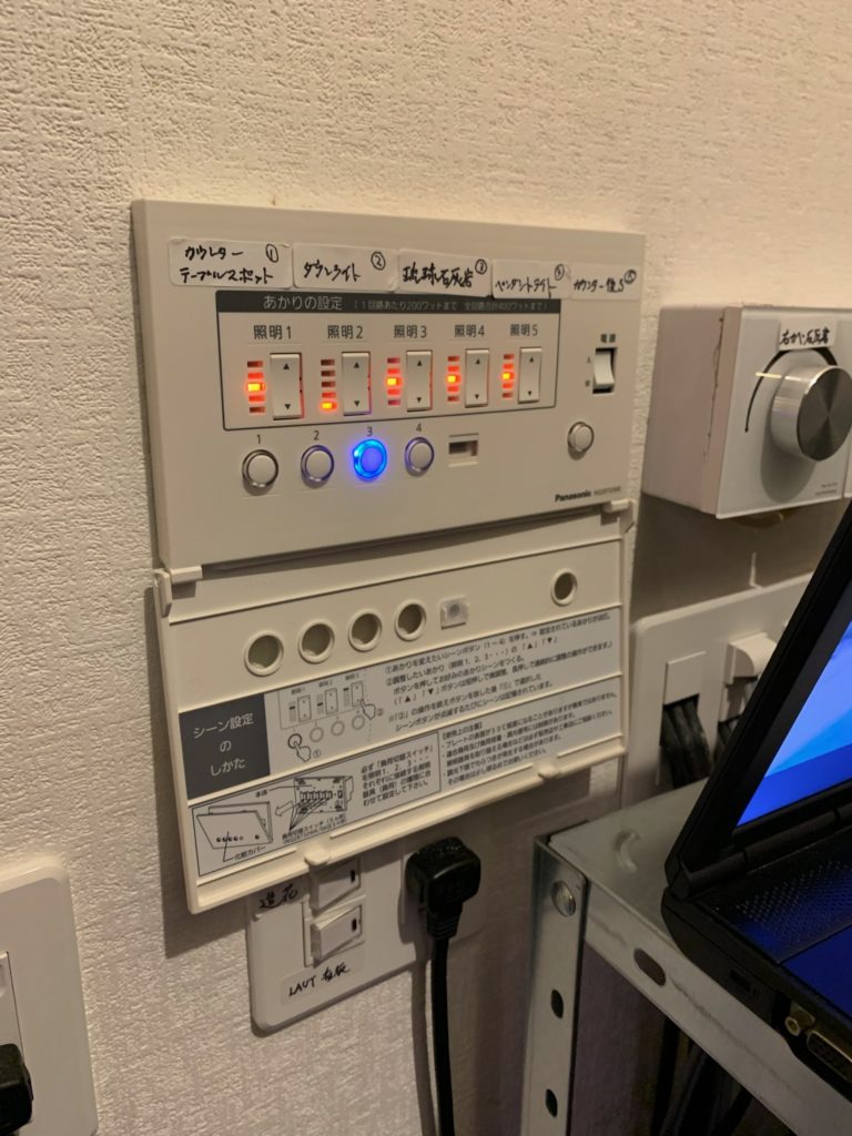 店舗内の照明は基本的にリビングライコンで4シーンを設定し、調光を制御しています。