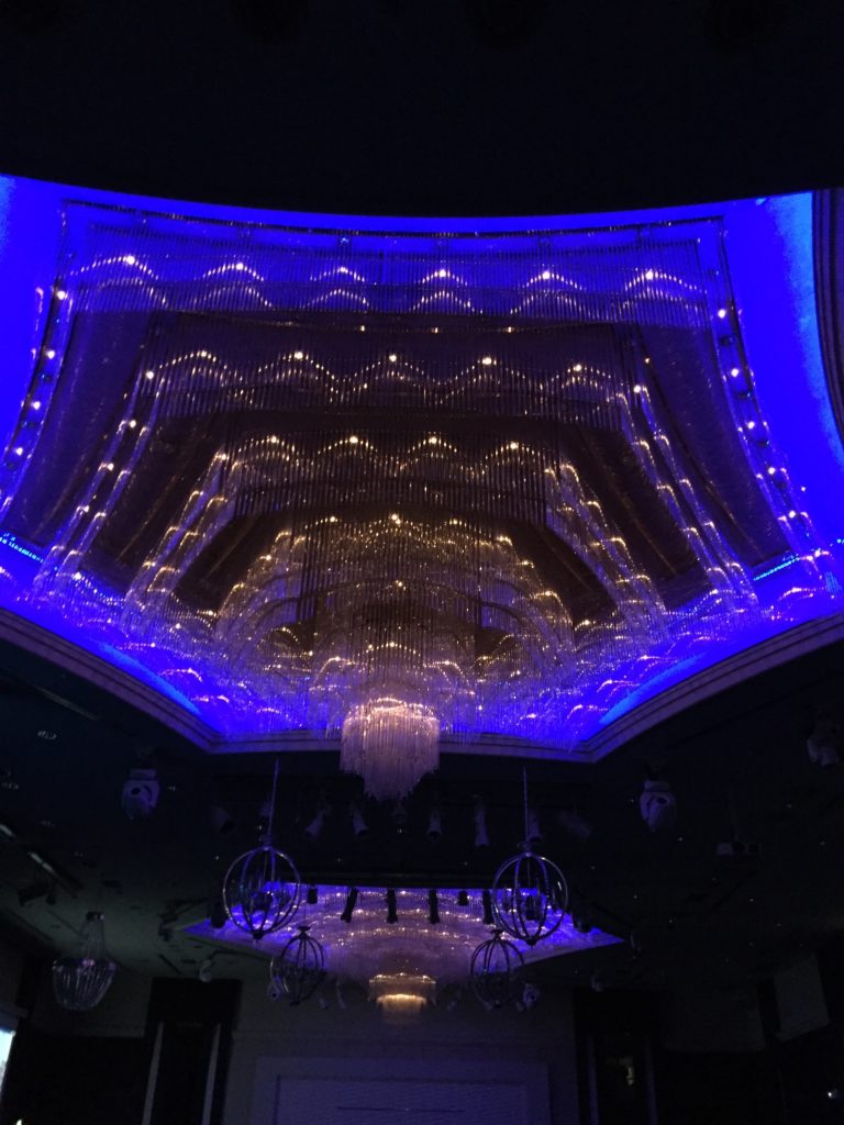 ところがLEDの更新時に器具選定を誤ると、照明を下げていった場合に5%~10%でちらつきが起きたり落ち際にパッと消えてしまったり、暗転から照明を上げていった時にパッと点いたりと、極め細かい調光が出来ない器具で更新を行ってしまう場合があります。更に照明器具メーカーも宴会場の使い勝手を理解せずに0%~100%の器具ではない器具を提案し、納めるケースも見かけますが、そもそも自社製品に無い場合もあります。ティーダの推奨するシャンデリア、ブラケット、間接調光システムはDC24VDMX制御で無段階の0%~100%調光を可能にしたもので、ダウンライトもPWM信号の無段階調光のシステムを用います。宴会場のベース照明のLED化をお考えの方はどうぞティーダにお問い合わせください。